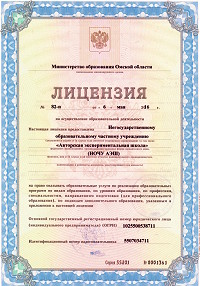 Лицензия на право осуществления образовательной деятельности: выдана Министерством образования Омской области, Серия 55Л01 № 0001861 от 06 мая 2016 года.