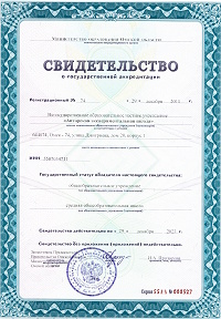 Свидетельство о государственной аккредитации выдано Министерством образования Омской области, Серия 55АА № 00527 от 29 декабря 2011 года, действительно по 29 декабря 2023 года.